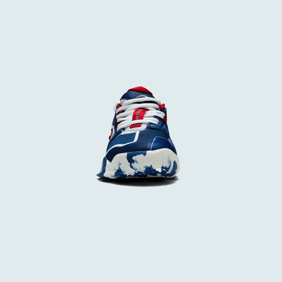 - Amortiguación y absorción de impactos: La entresuela absorbe los golpes gracias a un material altamente acolchado y sostenible hecho de EVA reciclada. La suela amortigua el impacto de saltos, estocadas repetidas y paradas súbitas.