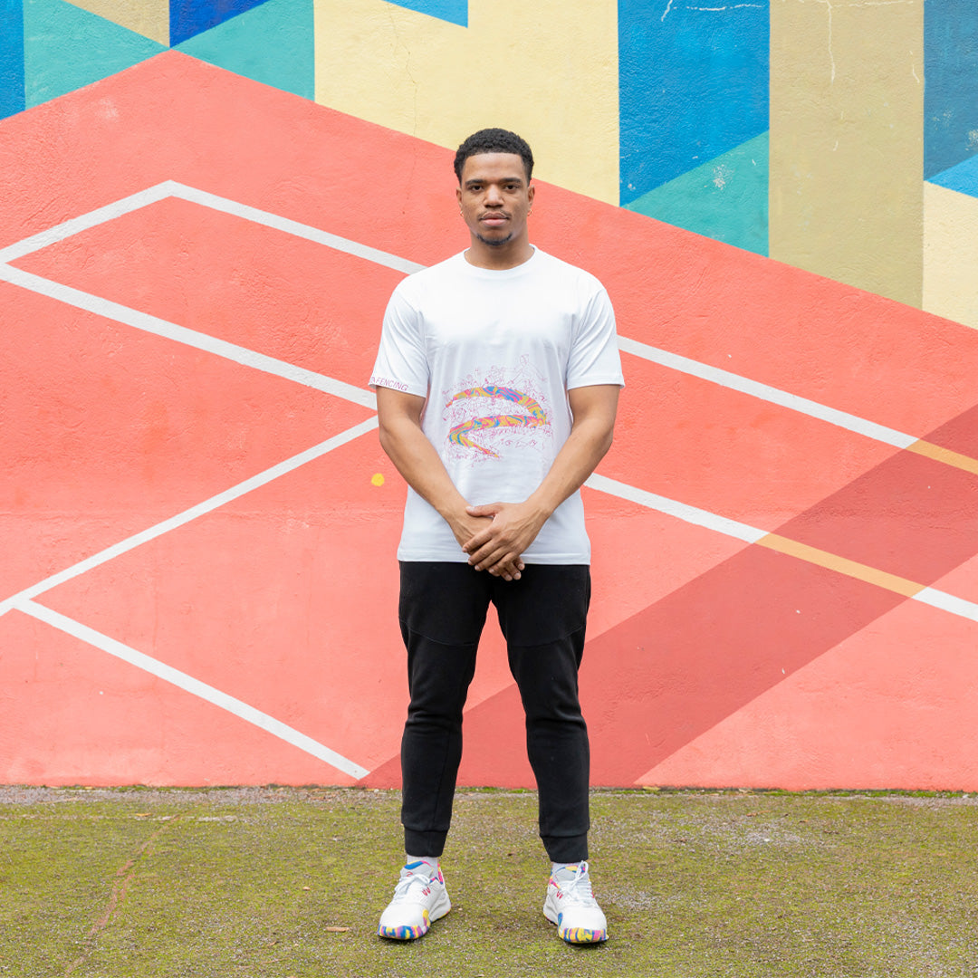 cushioned sustainable material made of recycled EVA. The sole absorbs the impact of jumps,
